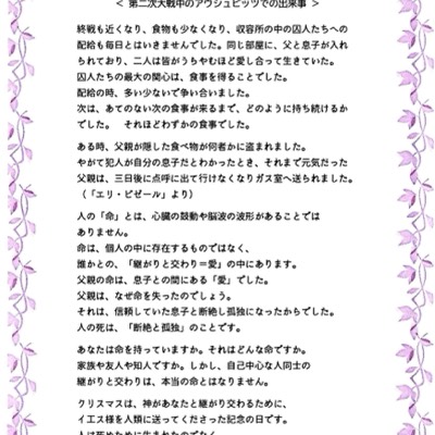 2021 クリスマスメッセージ「神さまの贈り物=いのち」